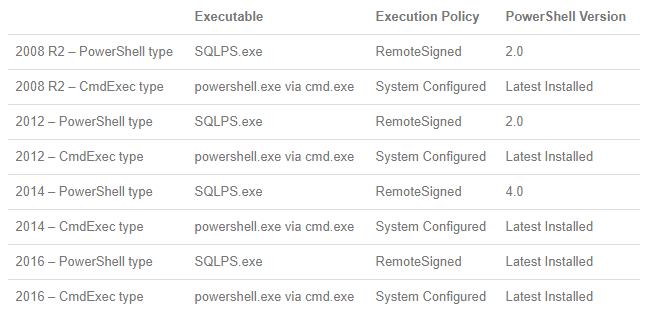 In Shawn’s fantastic post about Agent and dbatools, he outlines other problems including the fact that many (all?) external modules can’t load in the SQLPS host, which the PowerShell step still uses, even in SQL Server 2016. Note that the SQLPS host on the server-side is different from the updated SqlServer module, which is now available in the PowerShell Gallery.